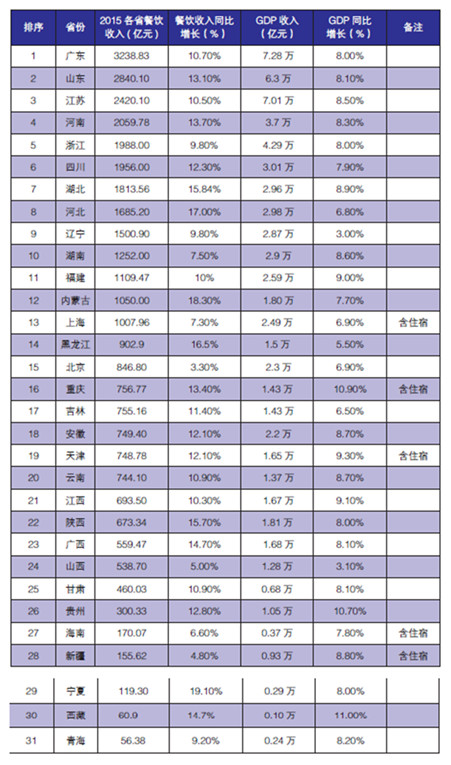2016 年度國(guó)內(nèi)各省市餐飲收入排行(2015 財(cái)年)