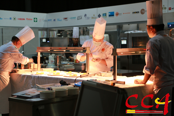 圖為2016年在德國(guó)埃爾福特舉行的第24屆奧林匹克烹飪大賽上,中國(guó)隊(duì)成員在制作美食。