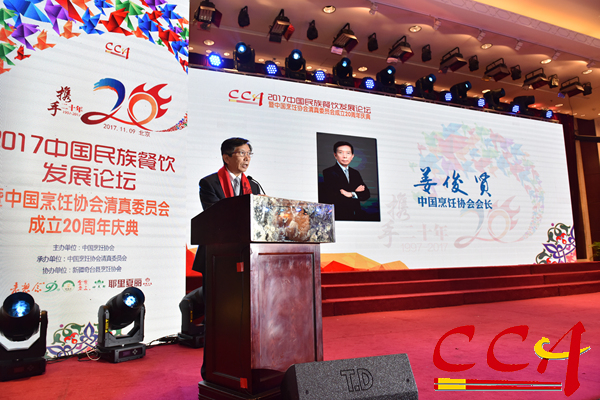 中國(guó)烹飪協(xié)會(huì)會(huì)長(zhǎng)姜俊賢發(fā)表致辭