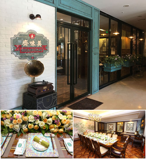 最后,對(duì)品牌進(jìn)行提升。以美味齋為例,在確定美味齋主打大上海,小資味,突出時(shí)尚情調(diào)后,我們選取了Tiffany藍(lán)作為餐具主色調(diào),將公共區(qū)域、散臺(tái)、包廂等打造成大上海、小資味風(fēng)格,以適應(yīng)閨蜜“拍照”黨。在餐位上,選取適合兩人用餐或快速拼桌的魔方桌,自由組合餐臺(tái),提高翻臺(tái)率。
