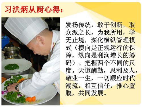 宜春鑫磊餐飲發(fā)展有限公司成立于2009年,位于宜春學(xué)院內(nèi),是一家自主創(chuàng)業(yè)品牌,規(guī);(jīng)營專業(yè)餐飲公司,公司法人為資深餐飲人士,中國贛菜大師習(xí)洪炳,恪守“以人為本”,“以質(zhì)取勝”及“顧客永遠是我們的朋友”的信念。